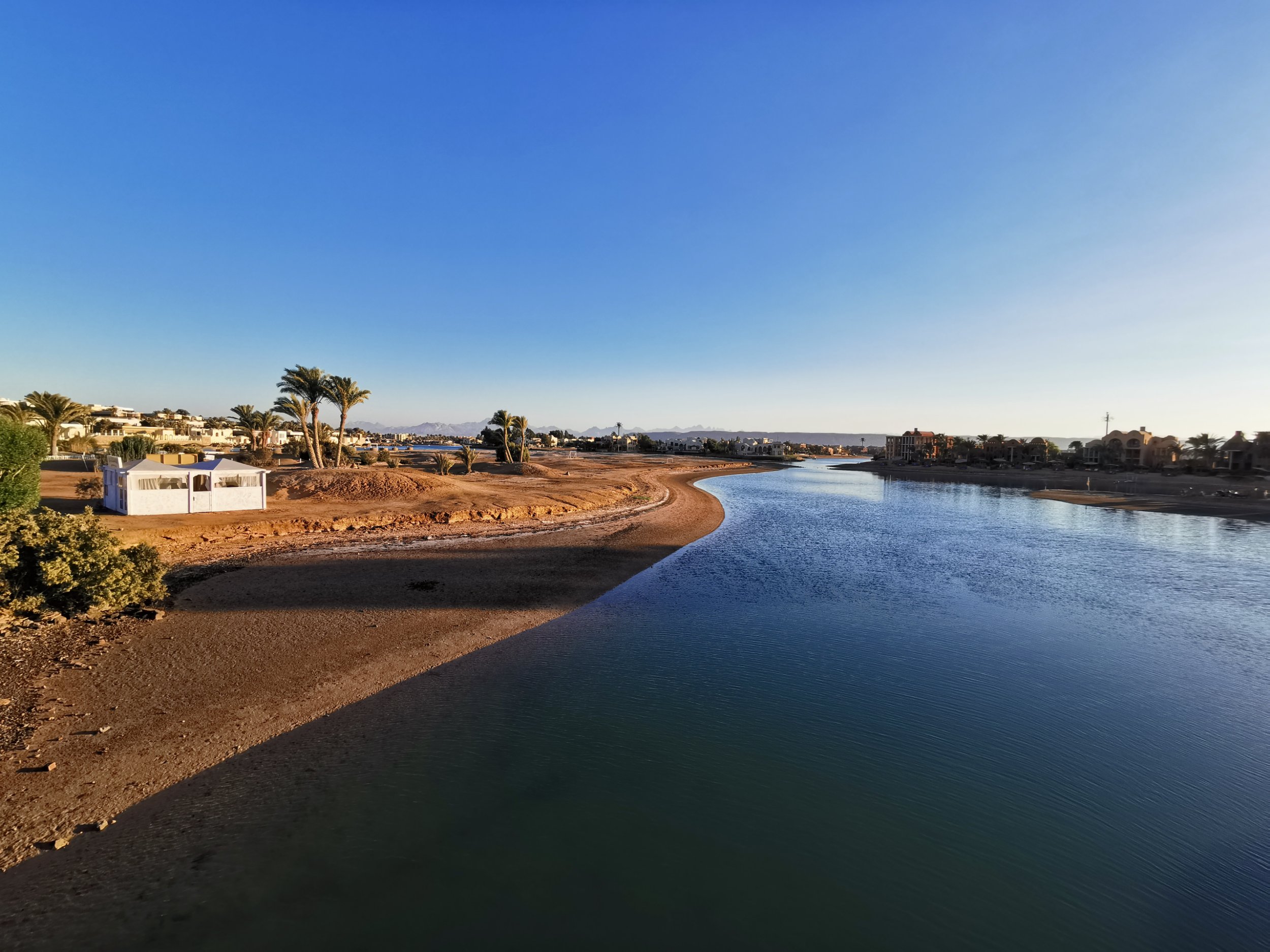 Der Flug ging schnell, der neue Flughafen in Hurghada scheint gut organisiert… Nur 15 Minuten nach der Landung stand ich schon am Gepäckband… Dann folgte das Warten auf die anderen Touristen, die auch nach El Gouna wollten.. Ein Reiseleiter mit witzigen Kommentaren und eine Fahrt durch Hurghada mit seinen Plattensilos, Müllbergen, die auch entlang der Straße in der Wüste überall zu finden sind…. 25km weiter kommt dann El Gouna… 1km vor Stadt ein Security Checkpoint, mit Spiegeln wird unter die Autos geschaut…. Dann noch 1km Wüste und dann die Retortenstadt an der Lagune…. Hier ist alles geleckt, kein Müll. Viel Security, Privatstrände an jedem Hotel… Alles ist hübsch angelegt, wie für Europäer gemacht…. Das ist zwar irgendwie schick, aber auch befremdlich, weil vollkommene unauthentisch….Trotzdem kann man sich wohlfühlen… Bis kurz nach 20 Uhr die deutsche Schlagermusik einsetzt… Vorher war das besser…Mal sehen, wie die Woche wird… Das Bier schmeckt schon mal gut..