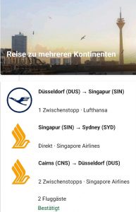 Heute steht unser Flug nach Singapur auf dem Programm, Montag geht es dann weiter nach Sydney..