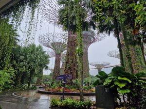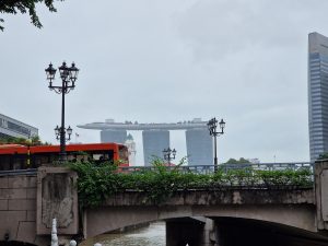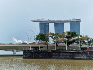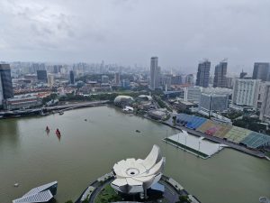 Man beachte den hier zum Beweis fotografierten blauen Fleck am Himmel… das Wetter war heute zwischendurch sogar kurz sonnig…. daher sind wir dann nochmal zum Marina Bay Sands und haben noch die auf 340m gelegene Aussichtsplattform mitgenommen… da hat es dann teilweise wieder etwas feuchtelich aufgefrischt….