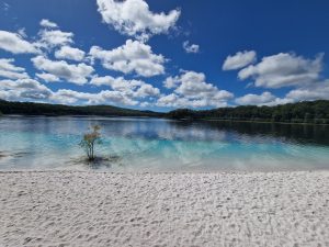 Mit dem 4WD Bus über den Strand und über wilde Sandpisten durch den Regenwald. ..schwimmen im Lake McKenzie und kleine Regenwaldtour….